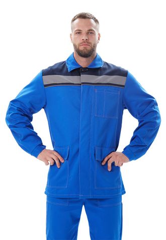 Куртка и брюки. - куртка прямого силуэта, удлиненная. - с центральной супатной застежкой на пуговицы. - нижние накладные карманы с клапанами, левый нагрудный накладной карман. - кокетки полочек и спинки выделены широкой лентой СОП и СВ кантом. - воротник отложной. - рукава на притачной манжете с пуговицей. Брюки прямые, - на поясе со шлевками. - застежка - гульфик на пуговицах. - верхние карманы с отрезным бочком. - задние накладные карманы. - в нижней части брюк широкая лента СОП.