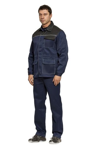 Куртка и брюки. Куртка с супатной застежкой на пуговицы, со световозвращающим кантом и световозвращающей полосой на спинке. Брюки с боковыми и задними карманами.