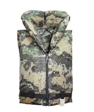 | Страховочный жилет изготавливается согласно ГОСТ Р 58108-2019. Жилет камуфляжного цвета (темный лес), имеет подголовник (воротник) для поддержания головы над водой. Фиксация осуществляется при помощи молнии и регулируемого ремня на застежке фастекс. По бокам жилета широкие резинки, позволяющие использовать жилет на любую фигуру от 44 до 56 размера. |