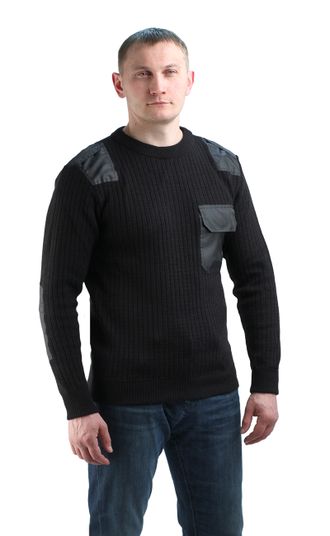Джемпер-свитер с усилительными накладками в области плеч и локтей, а так же накладной карман и погоны из водоотталкивающей ткани. Рекомендуется использовать с костюмами зимнего ассортимента, в т.ч. с костюмами охранника и как самостоятельную модель. Размер: с 44-46 по 60-62 Рост: 170-176, 182-188