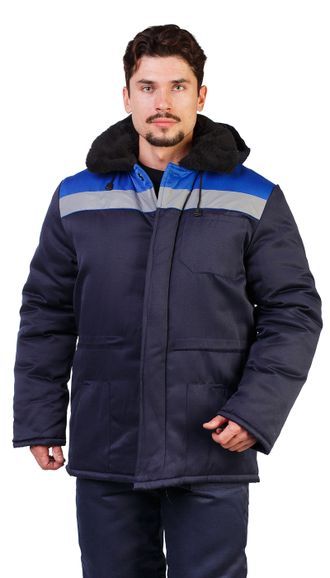 КУРТКА МУЖСКАЯ "ПАТРИОТ" ЗИМНЯЯ С МЕХОВЫМ ВОРОТНИКОМ Т-СИНЯЯ С ВАСИЛЬКОВЫМ ТК ОКСФОРД