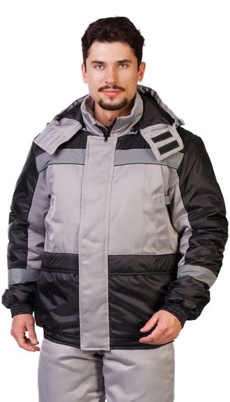 КОСТЮМ МУЖСКОЙ "СЕКТОР" ЗИМНИЙ КУРТКА П/К СВЕТЛО-СЕРЫЙ С ЧЕРНЫМ И СОП