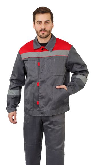 Костюм мужской Легенда летний рабочий с п/к т.серый с красным